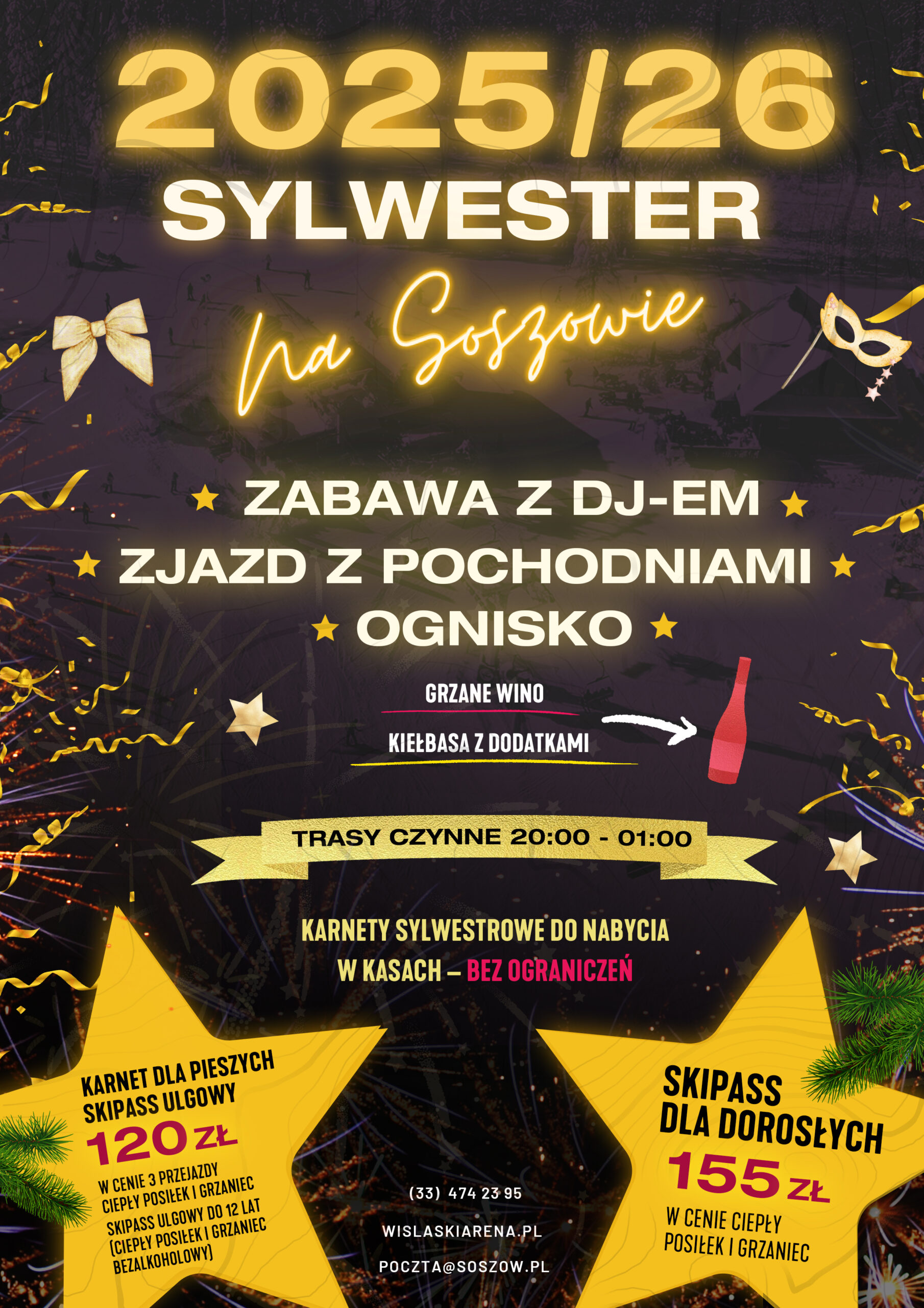 Dzisiaj, ostatnia partia informacji na temat tego, co Was czeka jutro wieczorem, podczas SYLWESTRA NA STOKACH SOSZOWA!